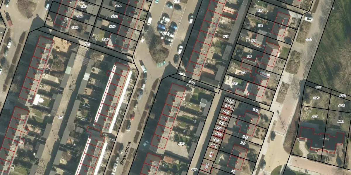 Het perceel waarop Sluyterstraat 37 staat heeft een oppervlakte van 2644 m². Dit is een zeer groot perceel. De perceeloppervlakte wordt geregistreerd door het Kadaster. Gedetailleerde informatie over de maten van dit perceel kunt u vinden in het rapport Kadastrale kaart met maatvoering van Sluyterstraat 37.