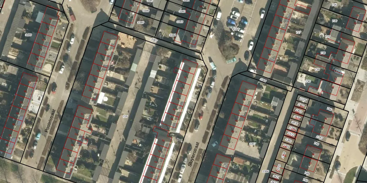 Het perceel waarop Sluyterstraat 42 staat heeft een oppervlakte van 5667 m². Dit is een zeer groot perceel. De perceeloppervlakte wordt geregistreerd door het Kadaster. Gedetailleerde informatie over de maten van dit perceel kunt u vinden in het rapport Kadastrale kaart met maatvoering van Sluyterstraat 42.