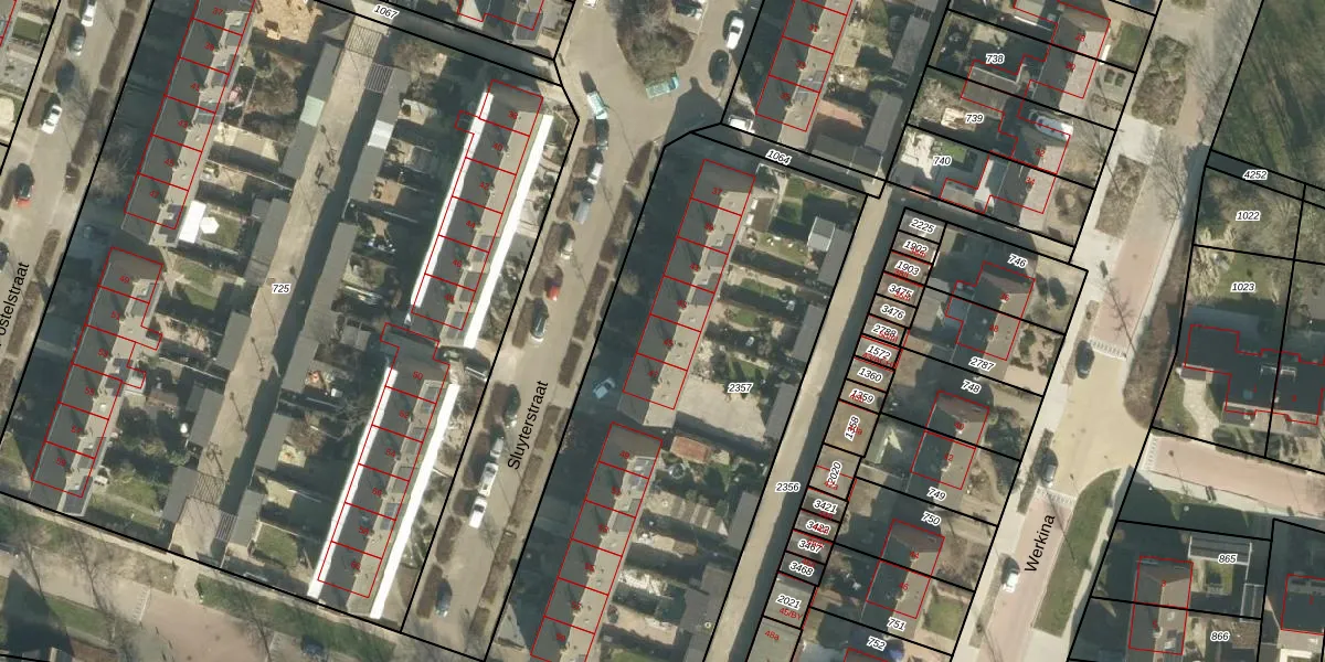 Het perceel waarop Sluyterstraat 45 staat heeft een oppervlakte van 2644 m². Dit is een zeer groot perceel. De perceeloppervlakte wordt geregistreerd door het Kadaster. Gedetailleerde informatie over de maten van dit perceel kunt u vinden in het rapport Kadastrale kaart met maatvoering van Sluyterstraat 45.