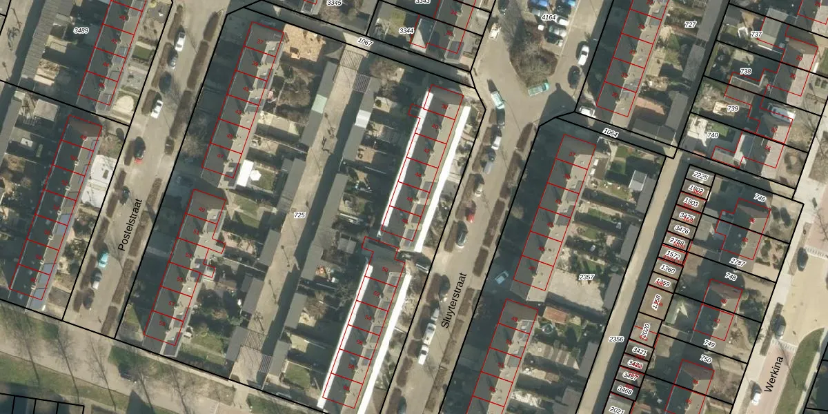 Het perceel waarop Sluyterstraat 46 staat heeft een oppervlakte van 5667 m². Dit is een zeer groot perceel. De perceeloppervlakte wordt geregistreerd door het Kadaster. Gedetailleerde informatie over de maten van dit perceel kunt u vinden in het rapport Kadastrale kaart met maatvoering van Sluyterstraat 46.