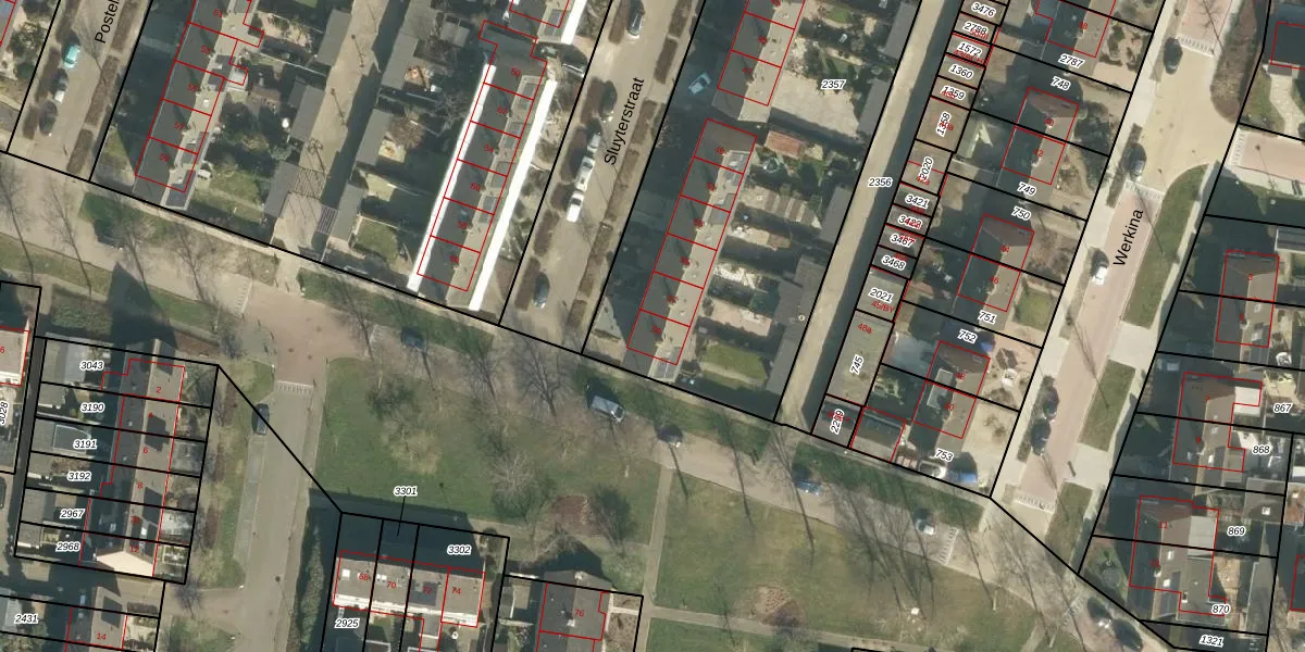 Het perceel waarop Sluyterstraat 59 staat heeft een oppervlakte van 2644 m². Dit is een zeer groot perceel. De perceeloppervlakte wordt geregistreerd door het Kadaster. Gedetailleerde informatie over de maten van dit perceel kunt u vinden in het rapport Kadastrale kaart met maatvoering van Sluyterstraat 59.