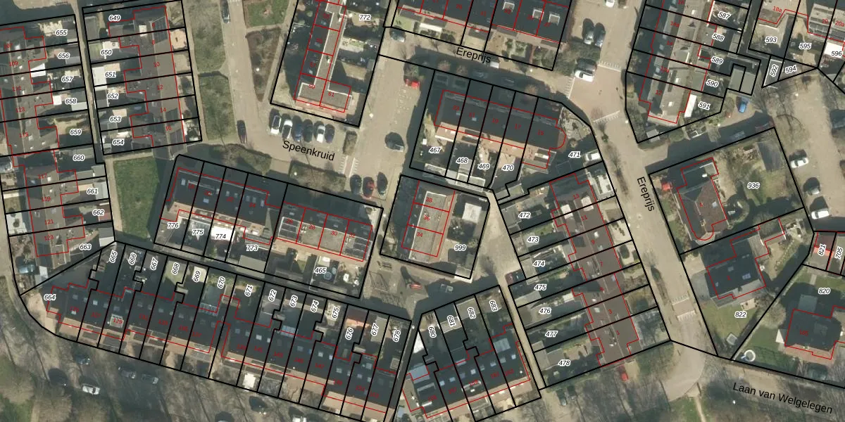 Het perceel waarop Speenkruid 36 staat heeft een oppervlakte van 430 m². Dit is een groot perceel. De perceeloppervlakte wordt geregistreerd door het Kadaster. Gedetailleerde informatie over de maten van dit perceel kunt u vinden in het rapport Kadastrale kaart met maatvoering van Speenkruid 36.