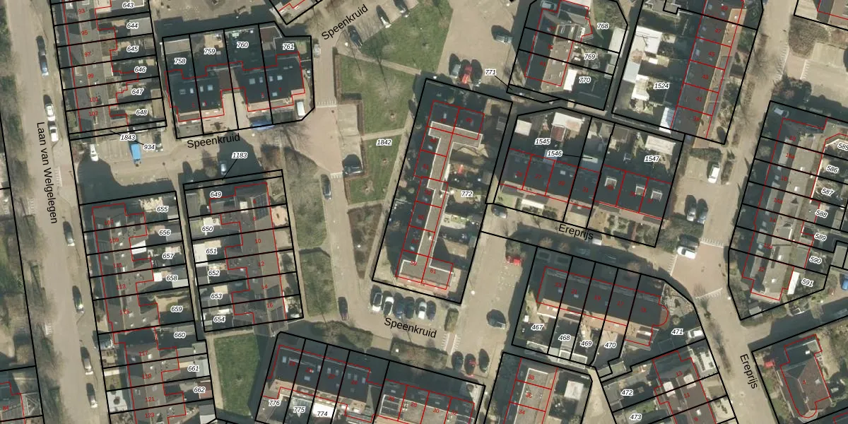 Het perceel waarop Speenkruid 55 staat heeft een oppervlakte van 1049 m². Dit is een zeer groot perceel. De perceeloppervlakte wordt geregistreerd door het Kadaster. Gedetailleerde informatie over de maten van dit perceel kunt u vinden in het rapport Kadastrale kaart met maatvoering van Speenkruid 55.