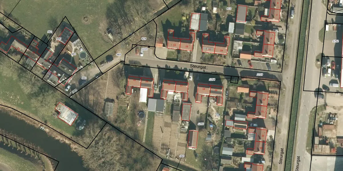 Steurgat 16 is gelegen op kadastraal perceel WKD00AB1255. Deze kadastrale aanduiding is uniek en wordt gebruikt door het Kadaster om eigendomsrechten en andere zakelijke rechten vast te leggen. Het perceel maakt onderdeel uit van de kadastrale gemeente Werkendam.