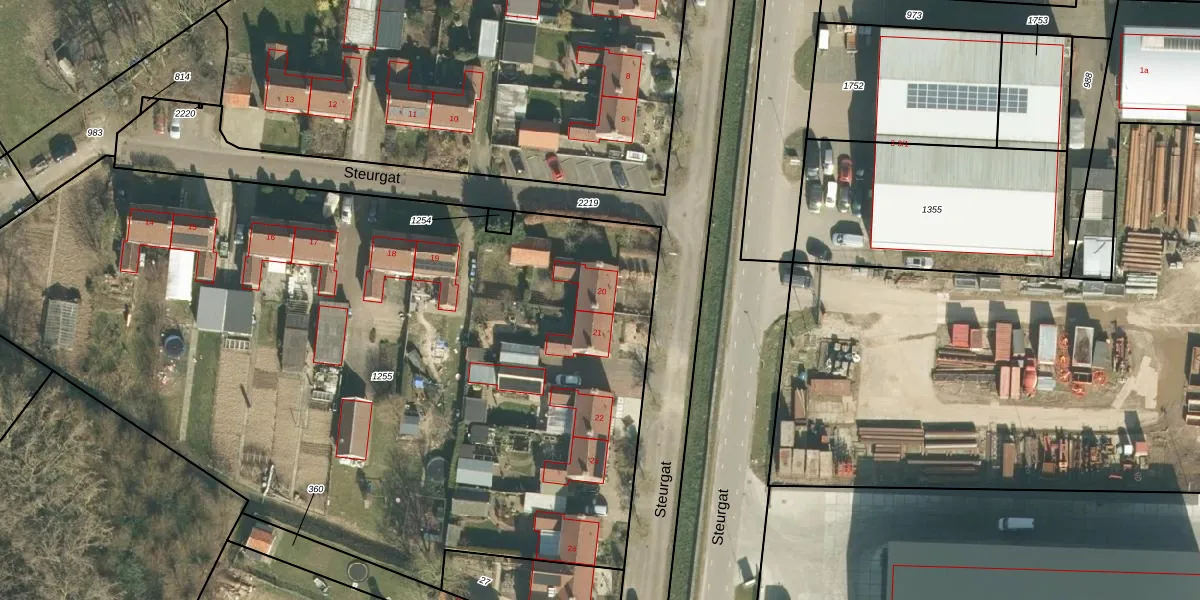 Het perceel waarop Steurgat 20 staat heeft een oppervlakte van 5644 m². Dit is een zeer groot perceel. De perceeloppervlakte wordt geregistreerd door het Kadaster. Gedetailleerde informatie over de maten van dit perceel kunt u vinden in het rapport Kadastrale kaart met maatvoering van Steurgat 20.
