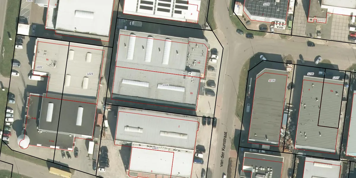van der Kunstraat 1-b is gelegen op kadastraal perceel WKD00P1316. Deze kadastrale aanduiding is uniek en wordt gebruikt door het Kadaster om eigendomsrechten en andere zakelijke rechten vast te leggen. Het perceel maakt onderdeel uit van de kadastrale gemeente Werkendam.