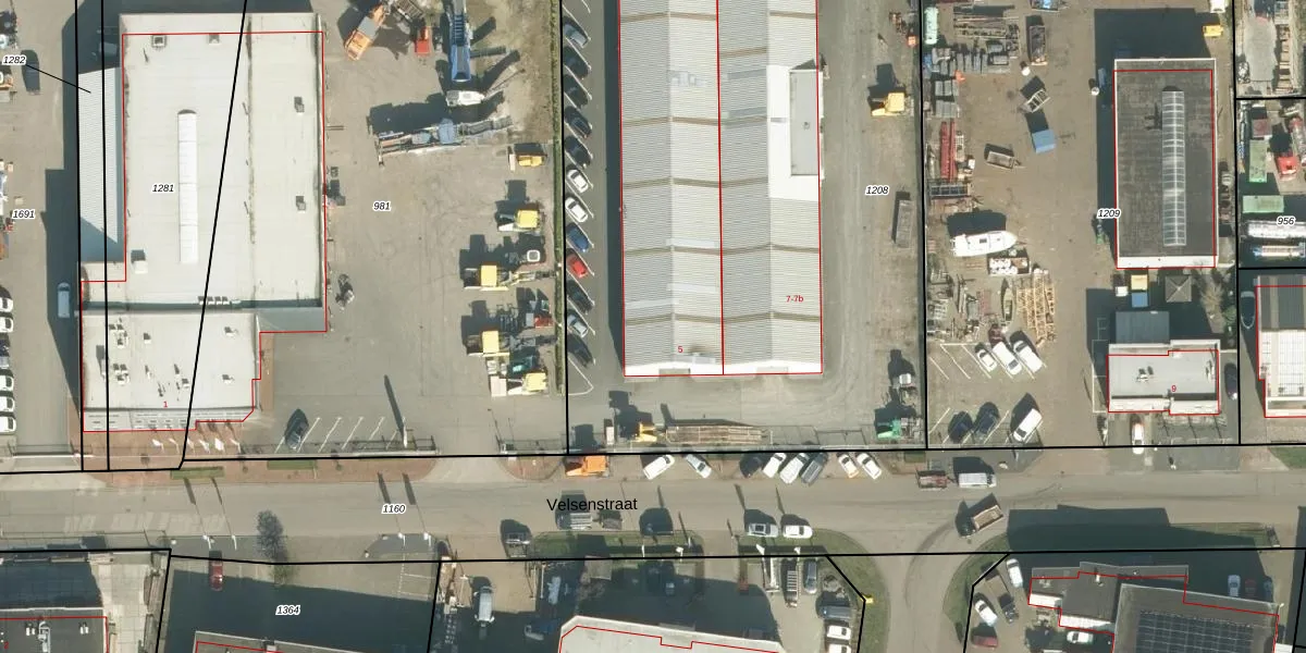 Het perceel waarop Velsenstraat 5 staat heeft een oppervlakte van 4265 m². Dit is een zeer groot perceel. De perceeloppervlakte wordt geregistreerd door het Kadaster. Gedetailleerde informatie over de maten van dit perceel kunt u vinden in het rapport Kadastrale kaart met maatvoering van Velsenstraat 5.