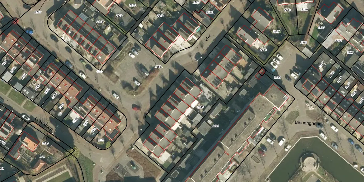 Het perceel waarop Vlet 15 staat heeft een oppervlakte van 1991 m². Dit is een zeer groot perceel. De perceeloppervlakte wordt geregistreerd door het Kadaster. Gedetailleerde informatie over de maten van dit perceel kunt u vinden in het rapport Kadastrale kaart met maatvoering van Vlet 15.