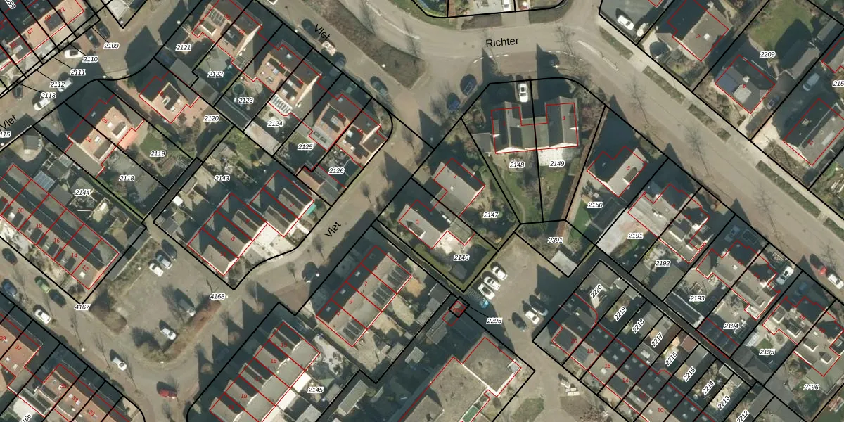 Het perceel waarop Vlet 3 staat heeft een oppervlakte van 344 m². Dit is een groot perceel. De perceeloppervlakte wordt geregistreerd door het Kadaster. Gedetailleerde informatie over de maten van dit perceel kunt u vinden in het rapport Kadastrale kaart met maatvoering van Vlet 3.