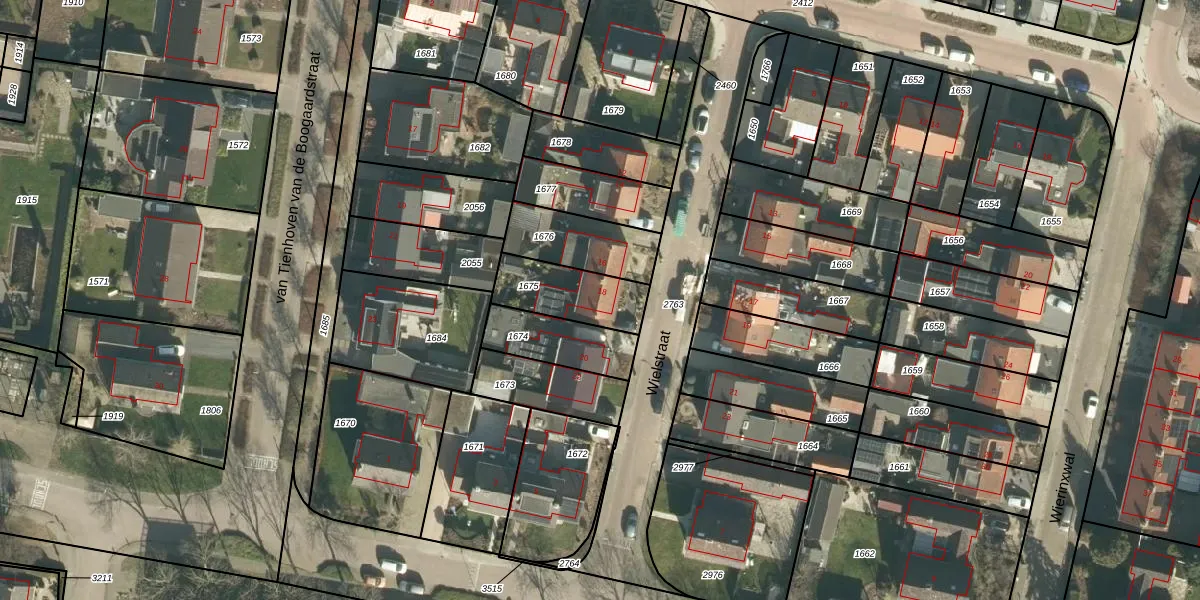 Het perceel waarop Wielstraat 18 staat heeft een oppervlakte van 217 m². Dit is een middelgroot perceel. De perceeloppervlakte wordt geregistreerd door het Kadaster. Gedetailleerde informatie over de maten van dit perceel kunt u vinden in het rapport Kadastrale kaart met maatvoering van Wielstraat 18.