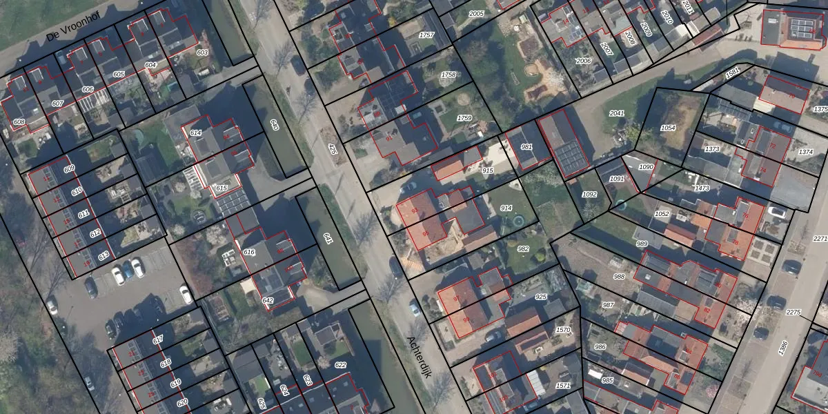 Het perceel waarop Achterdijk 93 staat heeft een oppervlakte van 405 m². Dit is een groot perceel. De perceeloppervlakte wordt geregistreerd door het Kadaster. Gedetailleerde informatie over de maten van dit perceel kunt u vinden in het rapport Kadastrale kaart met maatvoering van Achterdijk 93.