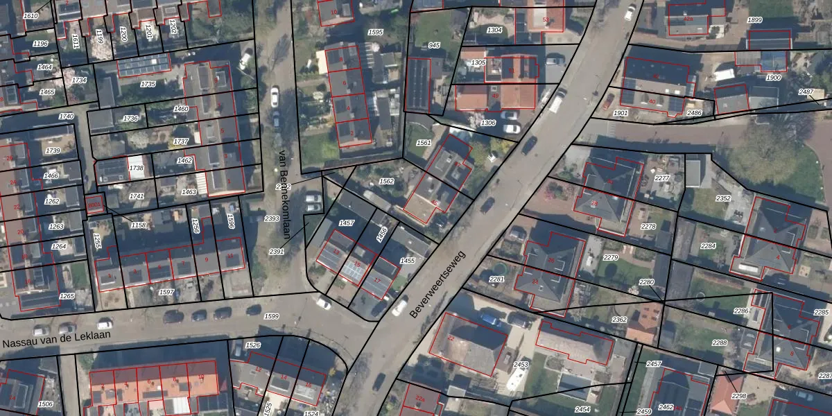 Gebruik de zoekbalk of klik op een perceel voor informatie over de adressen binnen dit perceel.