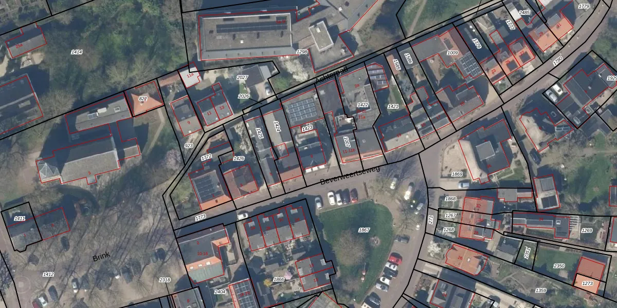 Gebruik de zoekbalk of klik op een perceel voor informatie over de adressen binnen dit perceel.