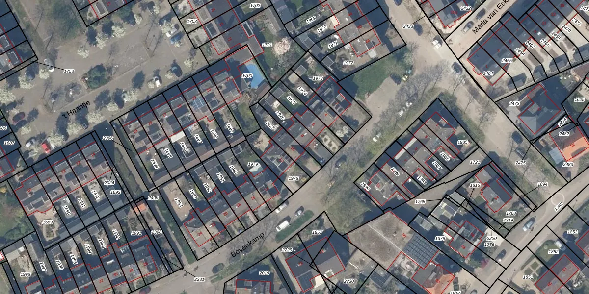Gebruik de zoekbalk of klik op een perceel voor informatie over de adressen binnen dit perceel.