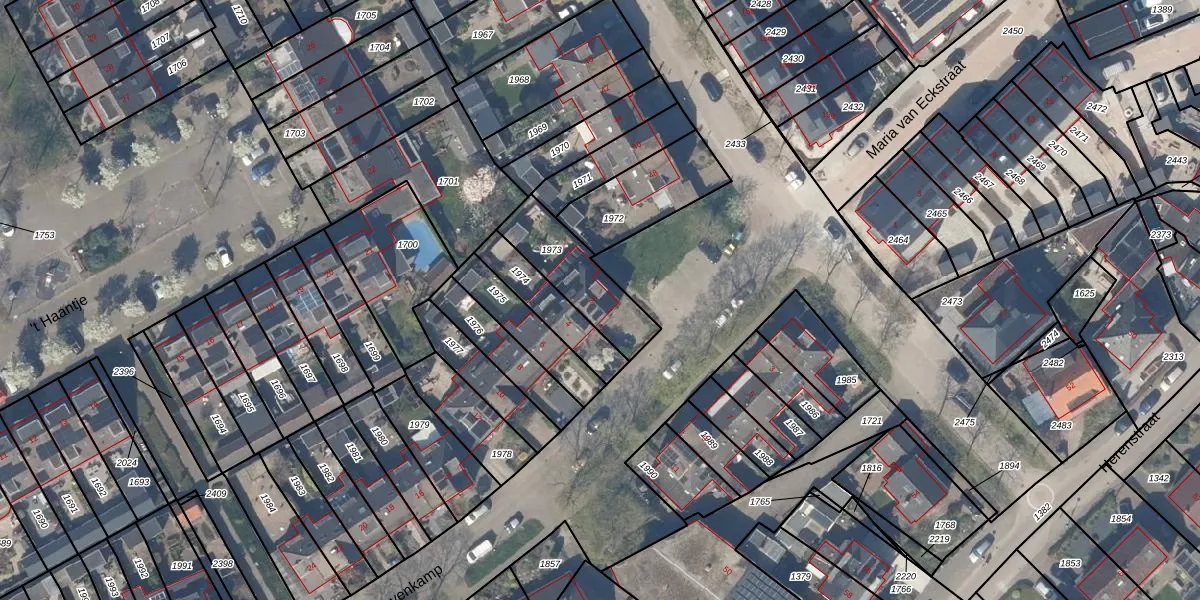 Gebruik de zoekbalk of klik op een perceel voor informatie over de adressen binnen dit perceel.