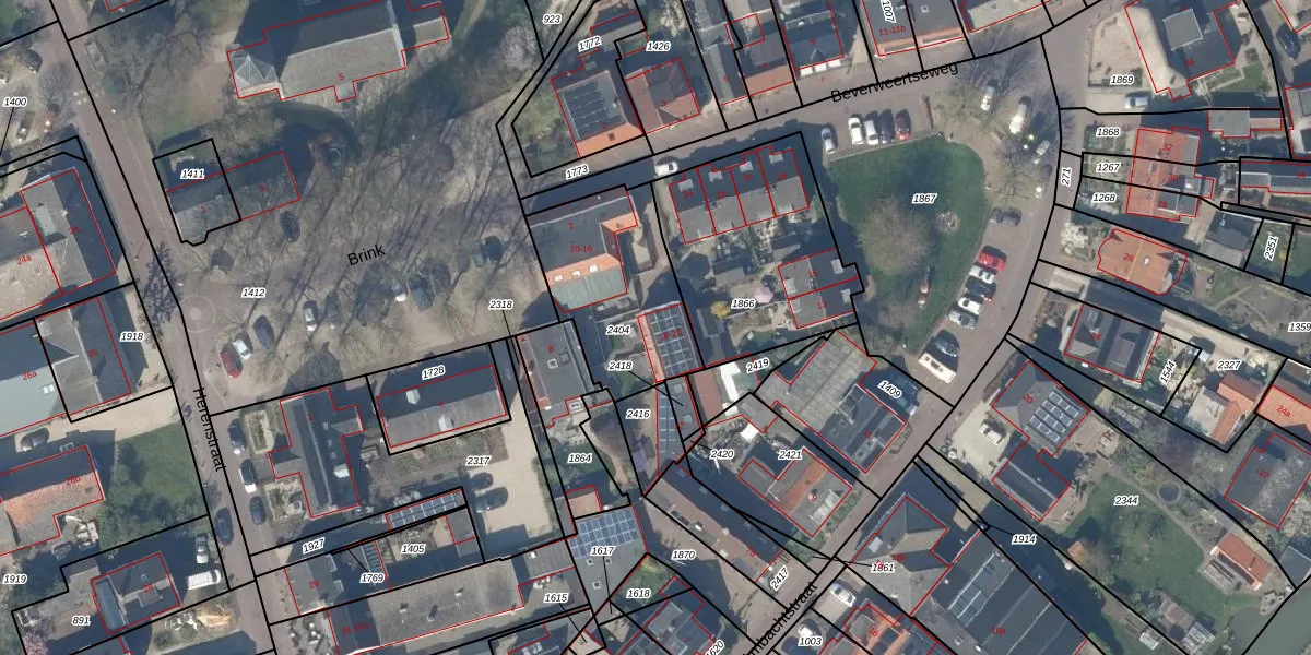 Het perceel waarop Brink 18 staat heeft een oppervlakte van 546 m². Dit is een groot perceel. De perceeloppervlakte wordt geregistreerd door het Kadaster. Gedetailleerde informatie over de maten van dit perceel kunt u vinden in het rapport Kadastrale kaart met maatvoering van Brink 18.