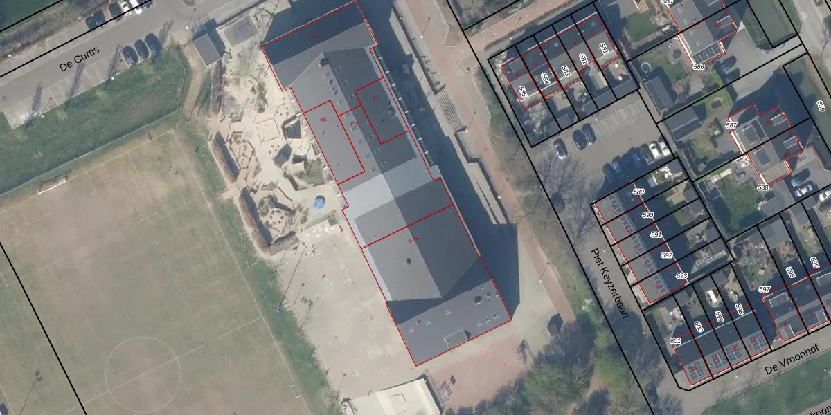 Het perceel waarop De Curtis 7-b staat heeft een oppervlakte van 4,7 ha. Dit is een zeer groot perceel. De perceeloppervlakte wordt geregistreerd door het Kadaster. Gedetailleerde informatie over de maten van dit perceel kunt u vinden in het rapport Kadastrale kaart met maatvoering van De Curtis 7-b.