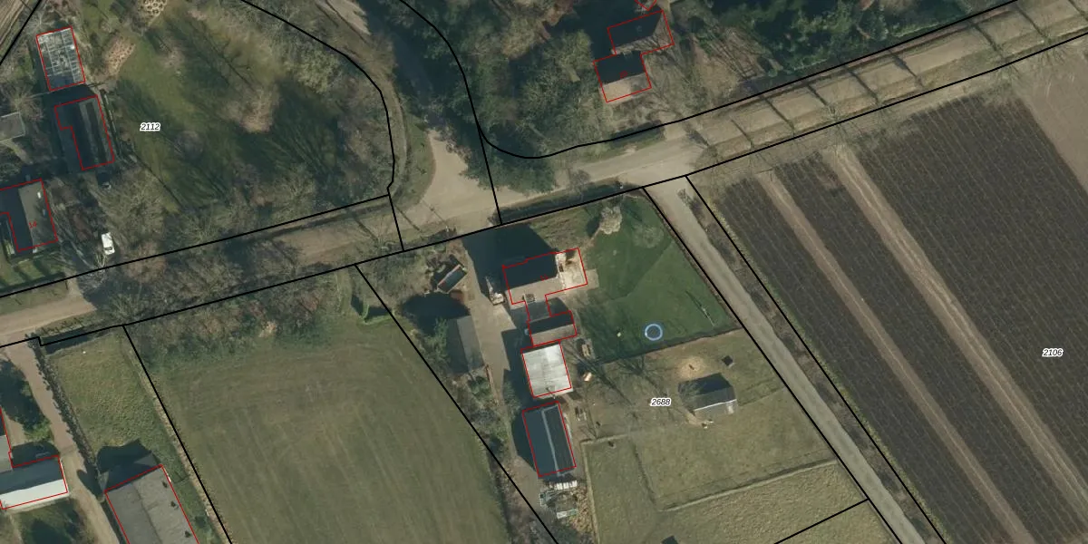 Het adres ligt op het perceel ZDT02-T-2688, dat zich in de kadastrale gemeente Zundert bevindt. De gemiddelde perceelgrootte in Zundert is 6763,29 m². Dit perceel is kleiner: de perceeloppervlakte bedraagt 3890 m². Het kleinste perceel in de kadastrale gemeente is 0 m² groot. De grootste perceeloppervlakte is 71,5 ha. Dit is het enige adres dat aanwezig is op het perceel. De huidige grenzen van het perceel zijn digitaal in de Basisregistratie Kadaster (BRK) geregistreerd op 17-11-2021.
