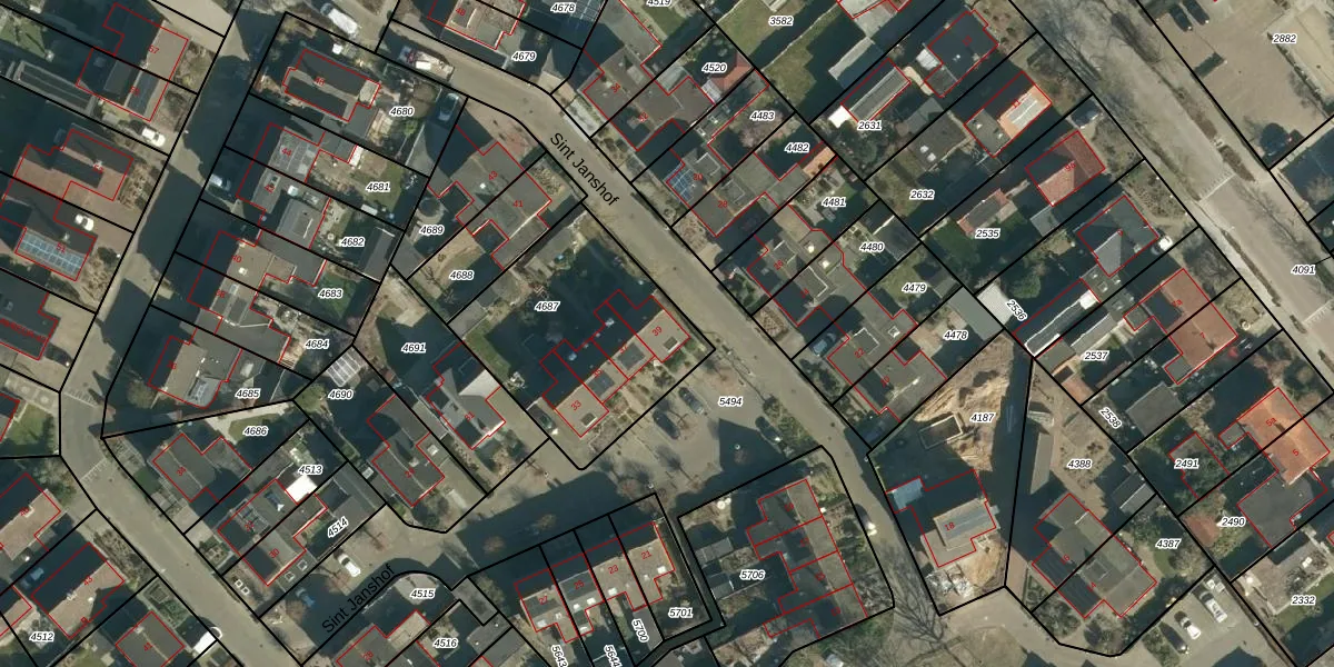 Het perceel waarop Sint Janshof 39 staat heeft een oppervlakte van 815 m². Dit is een groot perceel. De perceeloppervlakte wordt geregistreerd door het Kadaster. Gedetailleerde informatie over de maten van dit perceel kunt u vinden in het rapport Kadastrale kaart met maatvoering van Sint Janshof 39.