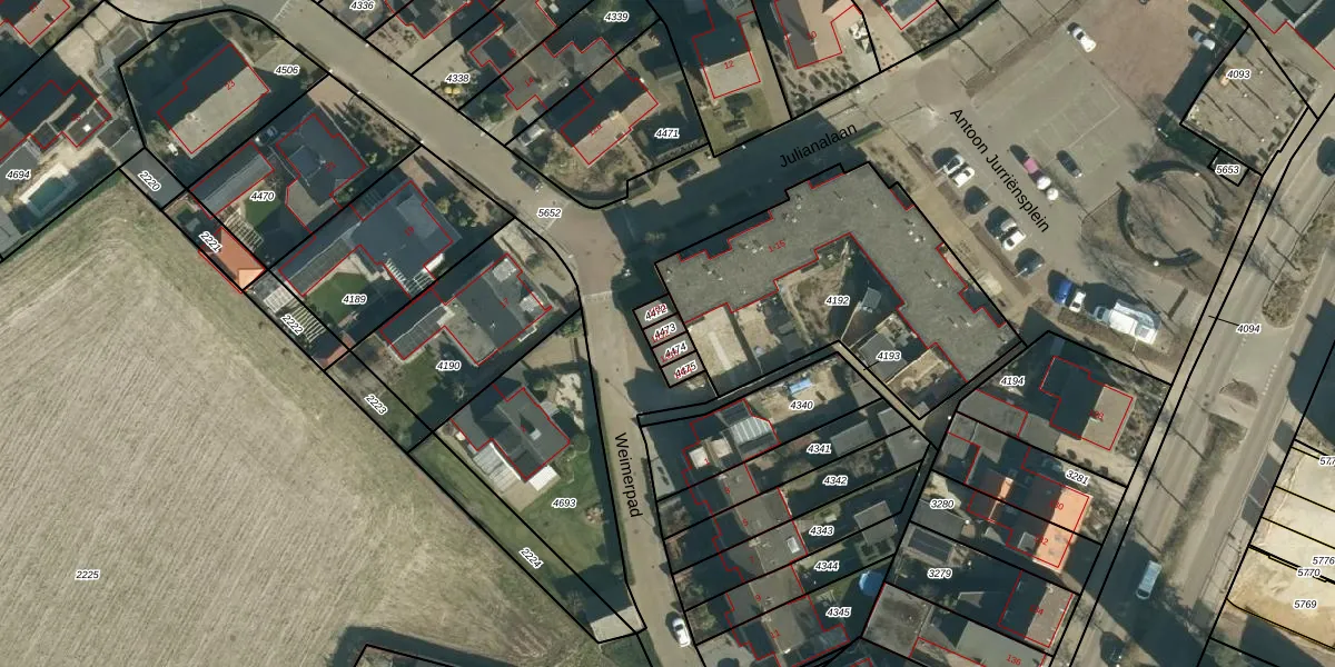 Weimerpad 1-G2 is gelegen op kadastraal perceel ZDT02E4473. Deze kadastrale aanduiding is uniek en wordt gebruikt door het Kadaster om eigendomsrechten en andere zakelijke rechten vast te leggen. Het perceel maakt onderdeel uit van de kadastrale gemeente Zundert.