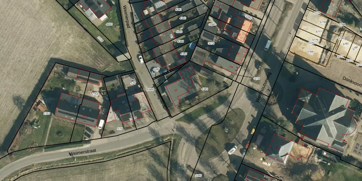 Weimerpad 13 is gelegen op kadastraal perceel ZDT02E4383. Deze kadastrale aanduiding is uniek en wordt gebruikt door het Kadaster om eigendomsrechten en andere zakelijke rechten vast te leggen. Het perceel maakt onderdeel uit van de kadastrale gemeente Zundert.