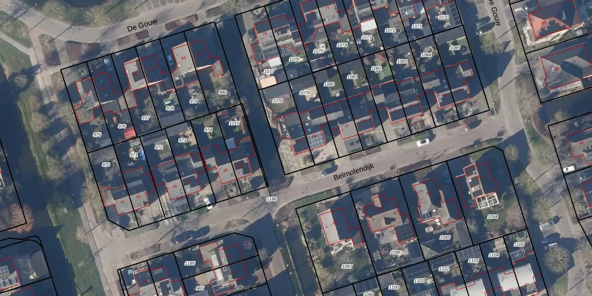 Het perceel waarop Belmolendijk 53 staat heeft een oppervlakte van 318 m². Dit is een groot perceel. De perceeloppervlakte wordt geregistreerd door het Kadaster. Gedetailleerde informatie over de maten van dit perceel kunt u vinden in het rapport Kadastrale kaart met maatvoering van Belmolendijk 53.