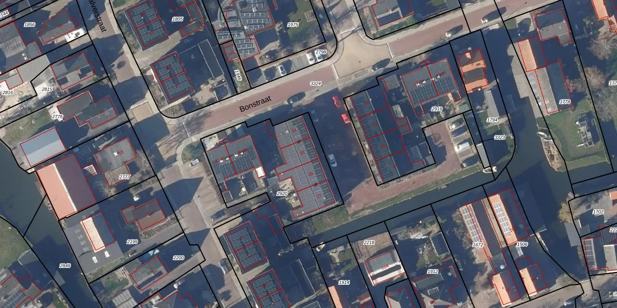 Het perceel waarop Bonstraat 31 staat heeft een oppervlakte van 2390 m². Dit is een zeer groot perceel. De perceeloppervlakte wordt geregistreerd door het Kadaster. Gedetailleerde informatie over de maten van dit perceel kunt u vinden in het rapport Kadastrale kaart met maatvoering van Bonstraat 31.