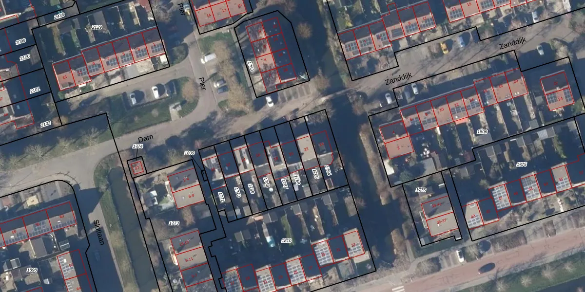 Gebruik de zoekbalk of klik op een perceel voor informatie over de adressen binnen dit perceel.