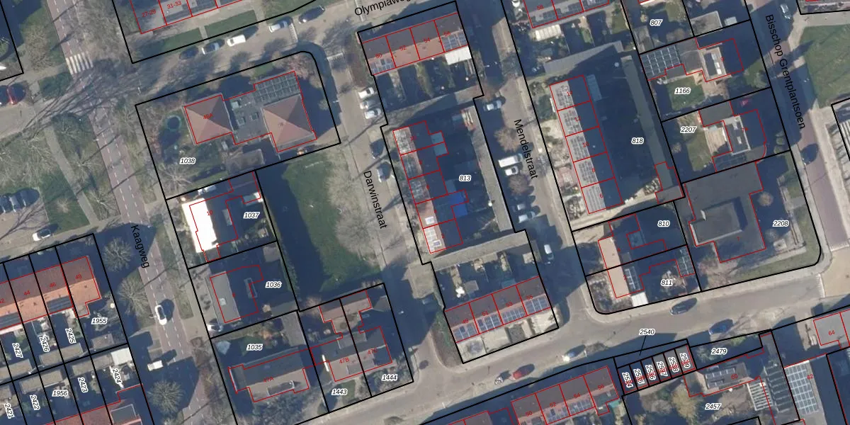 Het perceel waarop Darwinstraat 4 staat heeft een oppervlakte van 1910 m². Dit is een zeer groot perceel. De perceeloppervlakte wordt geregistreerd door het Kadaster. Gedetailleerde informatie over de maten van dit perceel kunt u vinden in het rapport Kadastrale kaart met maatvoering van Darwinstraat 4.
