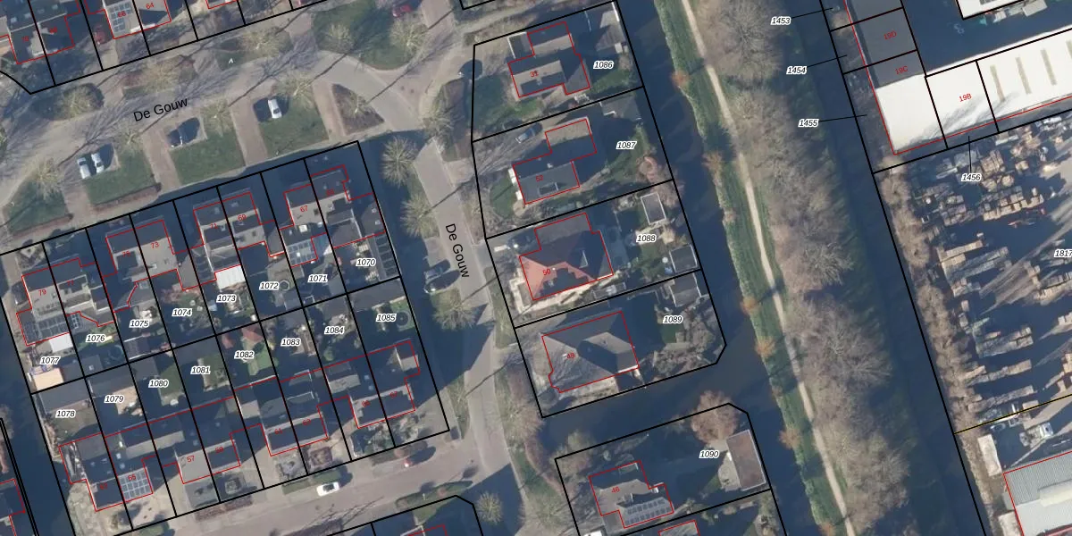 Het perceel waarop De Gouw 50 staat heeft een oppervlakte van 645 m². Dit is een groot perceel. De perceeloppervlakte wordt geregistreerd door het Kadaster. Gedetailleerde informatie over de maten van dit perceel kunt u vinden in het rapport Kadastrale kaart met maatvoering van De Gouw 50.