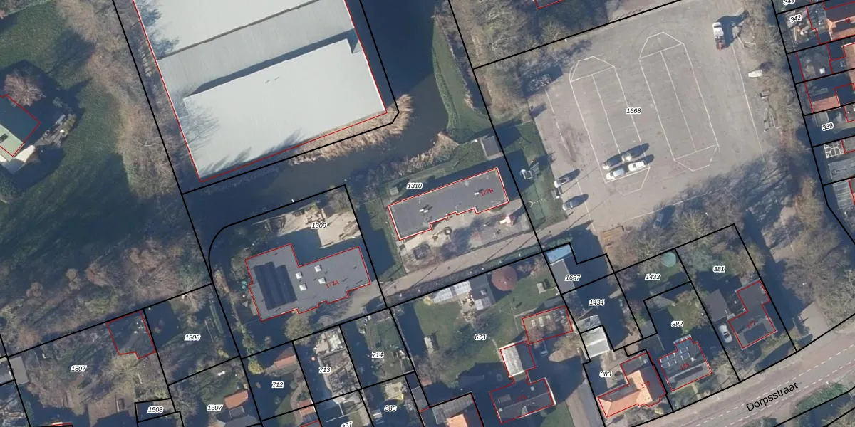 Het perceel waarop Dorpsstraat 177-B staat heeft een oppervlakte van 4300 m². Dit is een zeer groot perceel. De perceeloppervlakte wordt geregistreerd door het Kadaster. Gedetailleerde informatie over de maten van dit perceel kunt u vinden in het rapport Kadastrale kaart met maatvoering van Dorpsstraat 177-B.