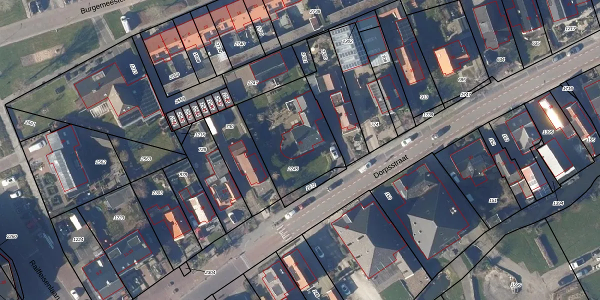 Het perceel waarop Dorpsstraat 25 staat heeft een oppervlakte van 800 m². Dit is een groot perceel. De perceeloppervlakte wordt geregistreerd door het Kadaster. Gedetailleerde informatie over de maten van dit perceel kunt u vinden in het rapport Kadastrale kaart met maatvoering van Dorpsstraat 25.