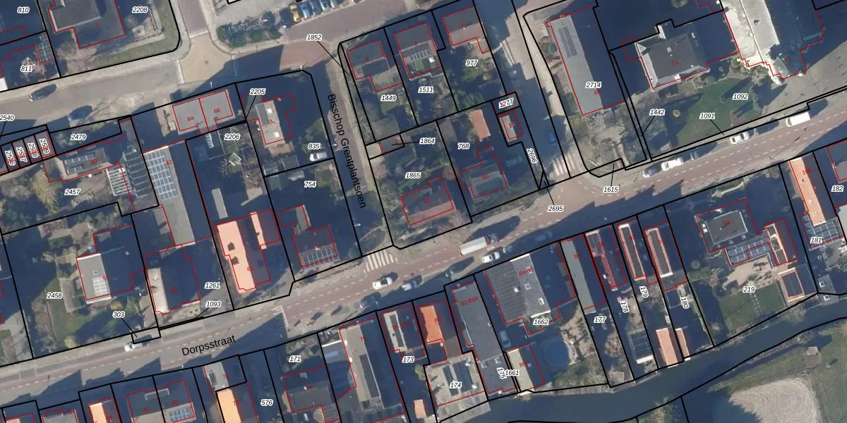 Het perceel waarop Dorpsstraat 63 staat heeft een oppervlakte van 450 m². Dit is een groot perceel. De perceeloppervlakte wordt geregistreerd door het Kadaster. Gedetailleerde informatie over de maten van dit perceel kunt u vinden in het rapport Kadastrale kaart met maatvoering van Dorpsstraat 63.