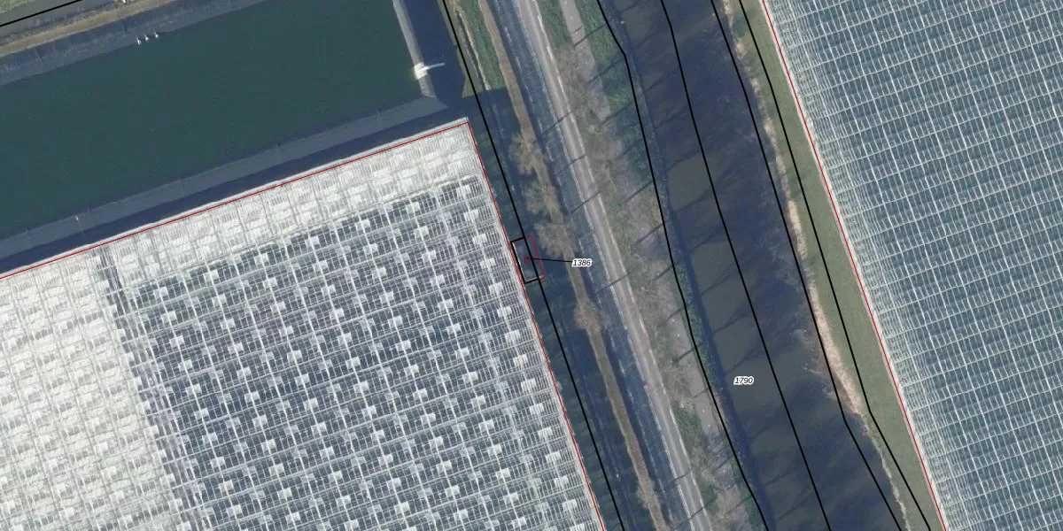 Het adres ligt op het perceel WVH00-O-1386, dat zich in de kadastrale gemeente Wervershoof bevindt. Het perceel is kleiner dan gemiddeld in Wervershoof. Het perceel is 23 m² groot, terwijl het gemiddelde ligt op 5056,92 m². De grootste perceeloppervlakte in de kadastrale gemeente is 5,69 km². De kleinste oppervlakte bedraagt 0 m². Op het perceel bevinden zich geen andere adressen. De huidige grenzen van het perceel zijn digitaal in de Basisregistratie Kadaster (BRK) geregistreerd op 11-03-2010.