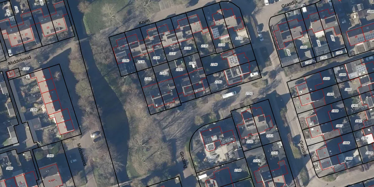 Glooiing 13 is gelegen op kadastraal perceel WVH00A2143. Deze kadastrale aanduiding is uniek en wordt gebruikt door het Kadaster om eigendomsrechten en andere zakelijke rechten vast te leggen. Het perceel maakt onderdeel uit van de kadastrale gemeente Wervershoof.
