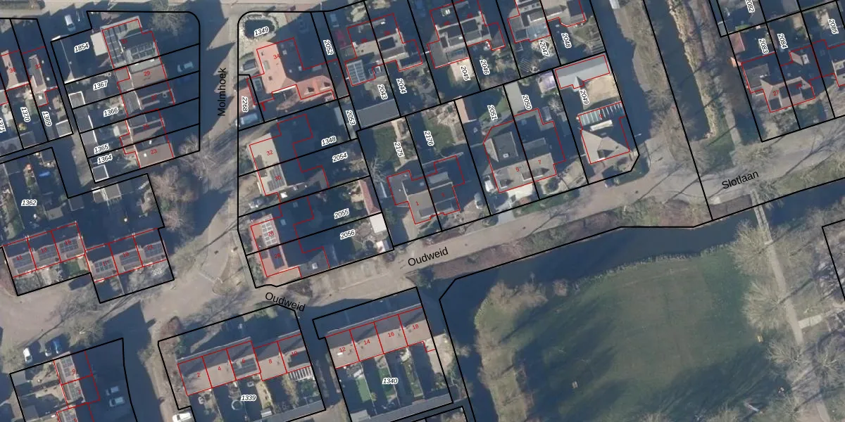 Het perceel waarop Oudweid 1 staat heeft een oppervlakte van 348 m². Dit is een groot perceel. De perceeloppervlakte wordt geregistreerd door het Kadaster. Gedetailleerde informatie over de maten van dit perceel kunt u vinden in het rapport Kadastrale kaart met maatvoering van Oudweid 1.