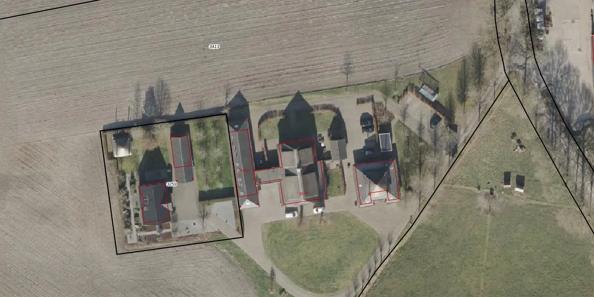 Het adres ligt op het perceel OLS00-H-3413, dat zich in de kadastrale gemeente Olst bevindt. Het perceel is met 2,2 ha relatief groot. Het gemiddelde ligt in de kadastrale gemeente Olst op 7080,03 m². Het grootste perceel in de kadastrale gemeente is 98,2 ha. Het kleinste perceel heeft een oppervlakte van 0 m². Op het perceel zijn 12 adressen aanwezig. In de Basisregistratie Kadaster (BRK) werden de grenzen van het perceel geregistreerd op 28-04-2015.
