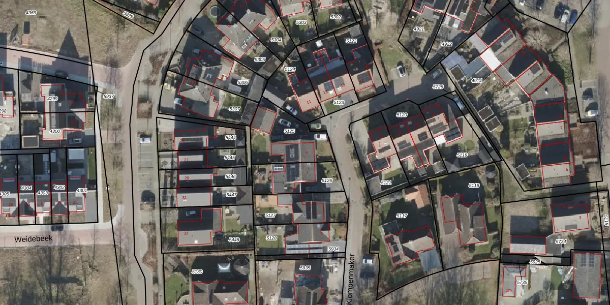 Het perceel waarop Klompenmaker 9 staat heeft een oppervlakte van 400 m². Dit is een groot perceel. De perceeloppervlakte wordt geregistreerd door het Kadaster. Gedetailleerde informatie over de maten van dit perceel kunt u vinden in het rapport Kadastrale kaart met maatvoering van Klompenmaker 9.