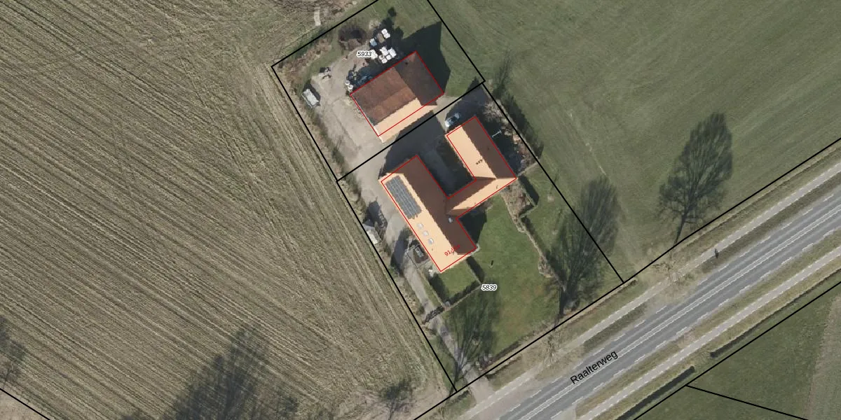 Het perceel waarop Raalterweg 91-a staat heeft een oppervlakte van 2585 m². Dit is een zeer groot perceel. De perceeloppervlakte wordt geregistreerd door het Kadaster. Gedetailleerde informatie over de maten van dit perceel kunt u vinden in het rapport Kadastrale kaart met maatvoering van Raalterweg 91-a.