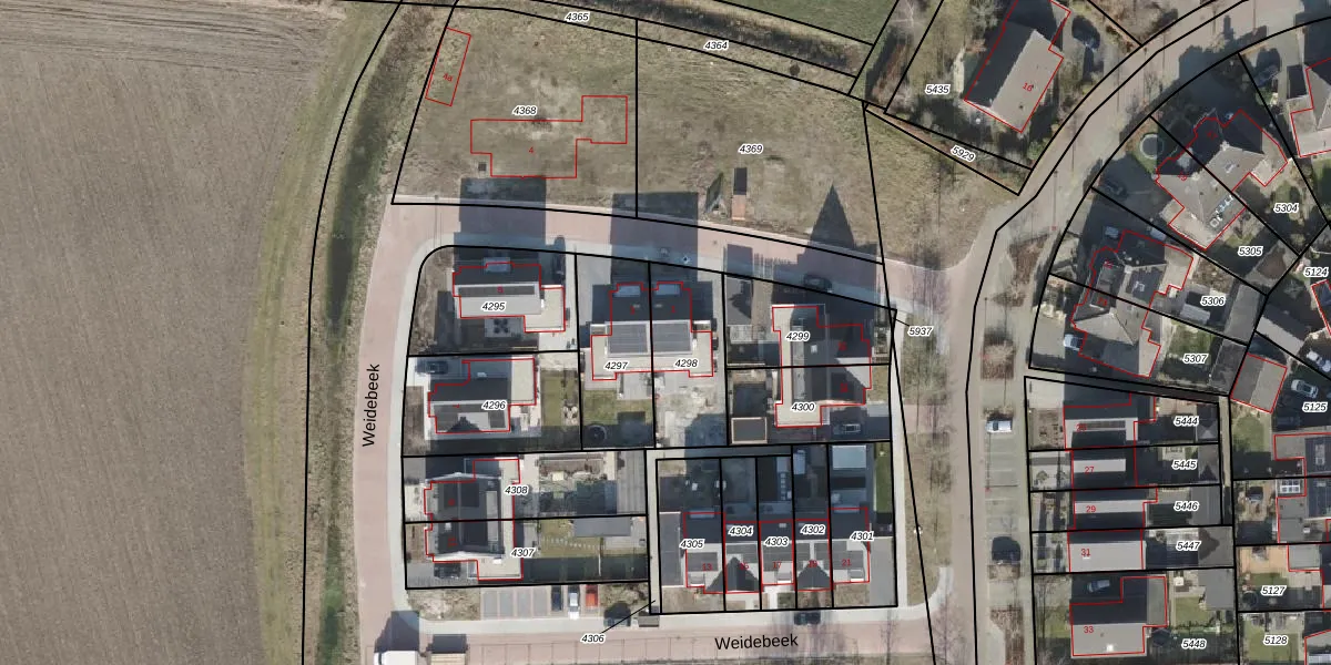 Het perceel waarop Weidebeek 1 staat heeft een oppervlakte van 299 m². Dit is een middelgroot perceel. De perceeloppervlakte wordt geregistreerd door het Kadaster. Gedetailleerde informatie over de maten van dit perceel kunt u vinden in het rapport Kadastrale kaart met maatvoering van Weidebeek 1.