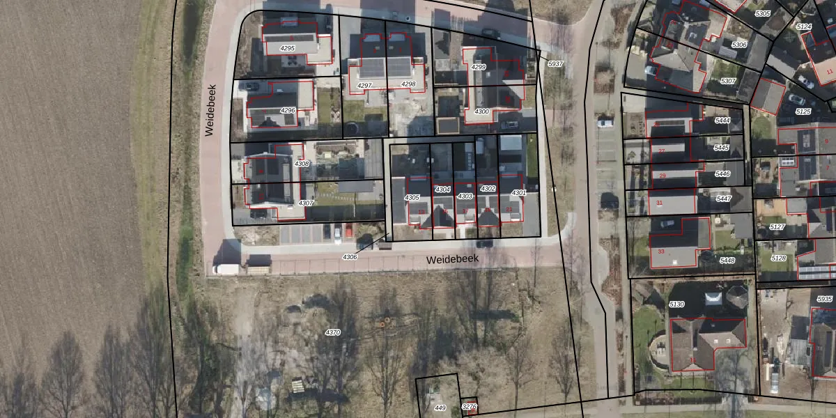 Weidebeek 13 is gelegen op kadastraal perceel OLS00H4305. Deze kadastrale aanduiding is uniek en wordt gebruikt door het Kadaster om eigendomsrechten en andere zakelijke rechten vast te leggen. Het perceel maakt onderdeel uit van de kadastrale gemeente Olst.