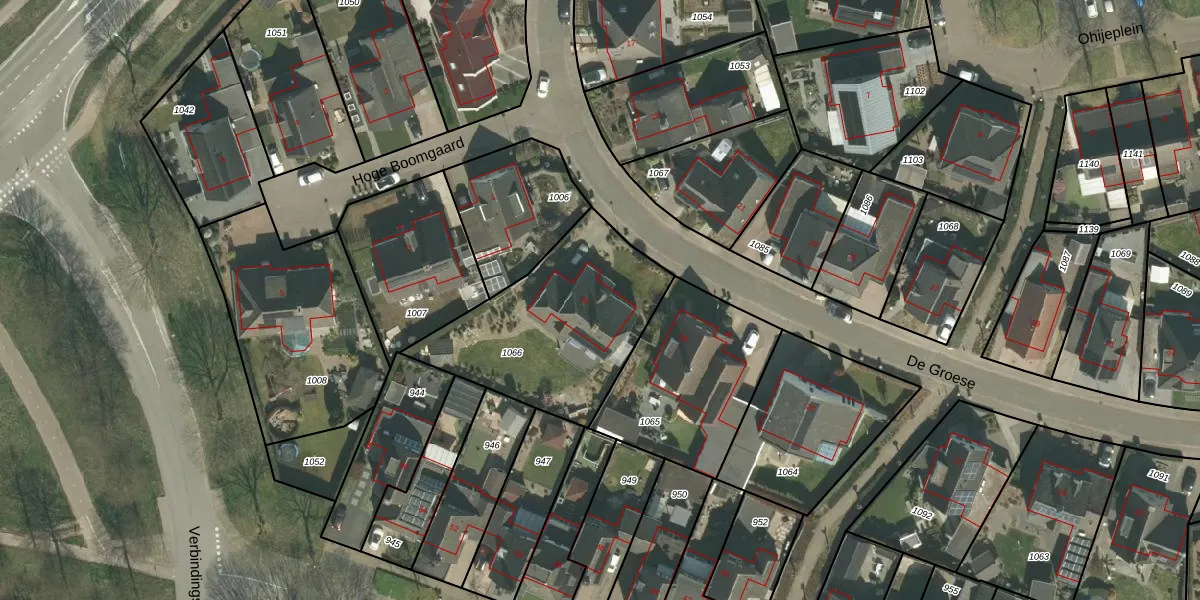 Gebruik de zoekbalk of klik op een perceel voor informatie over de adressen binnen dit perceel.