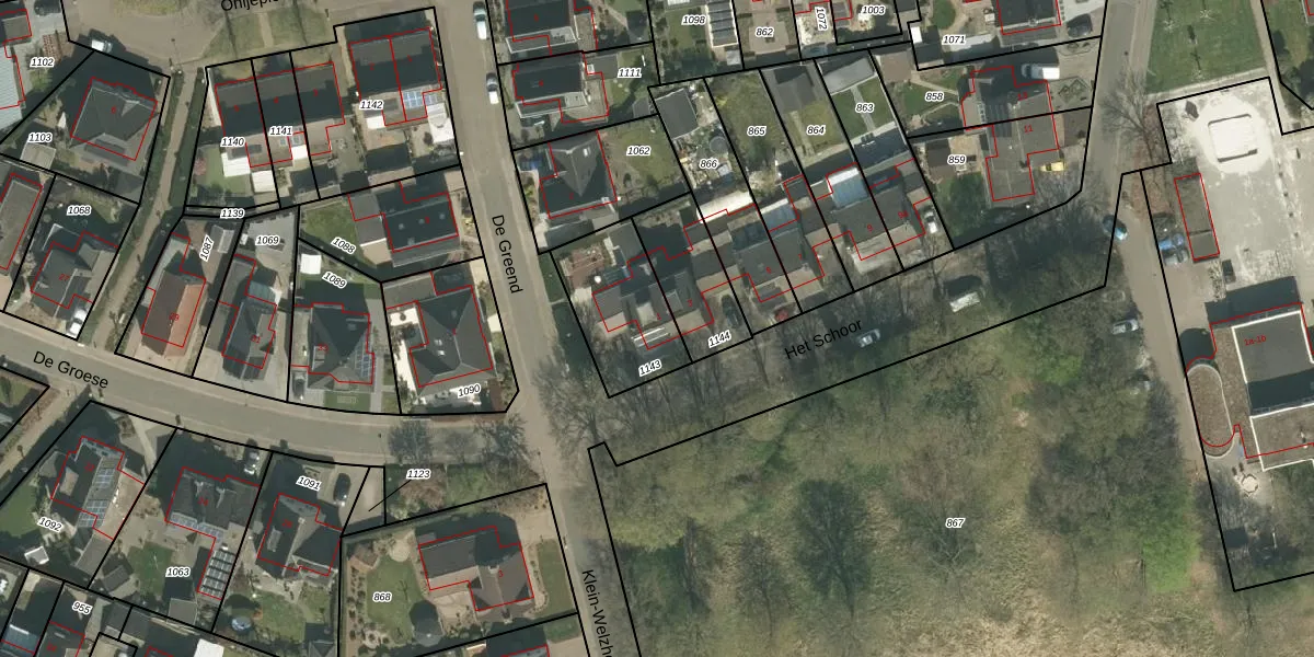 Het Schoor 1 is gelegen op kadastraal perceel WSM01D1143. Deze kadastrale aanduiding is uniek en wordt gebruikt door het Kadaster om eigendomsrechten en andere zakelijke rechten vast te leggen. Het perceel maakt onderdeel uit van de kadastrale gemeente Wessem.