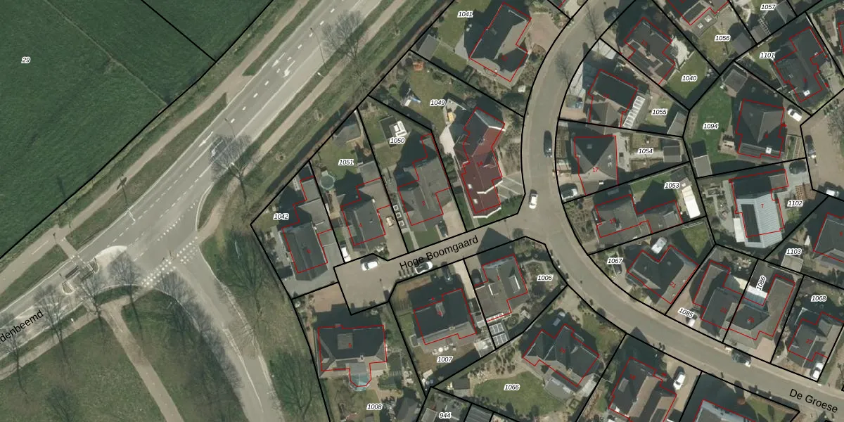 Het perceel waarop Hoge Boomgaard 2 staat heeft een oppervlakte van 480 m². Dit is een groot perceel. De perceeloppervlakte wordt geregistreerd door het Kadaster. Gedetailleerde informatie over de maten van dit perceel kunt u vinden in het rapport Kadastrale kaart met maatvoering van Hoge Boomgaard 2.