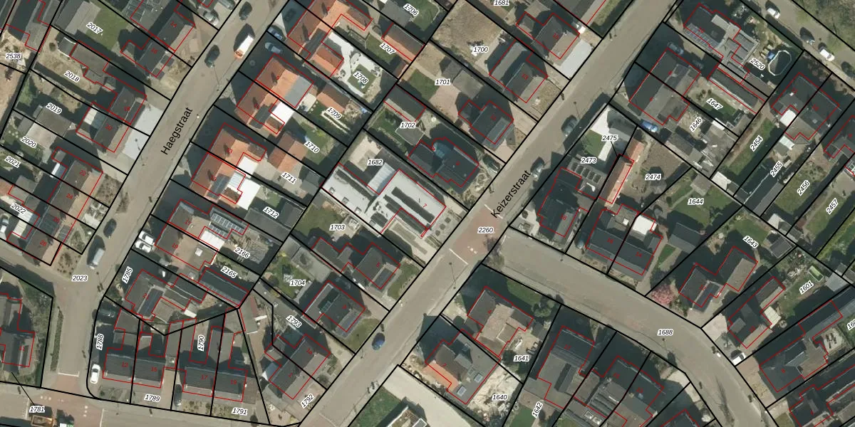 Gebruik de zoekbalk of klik op een perceel voor informatie over de adressen binnen dit perceel.