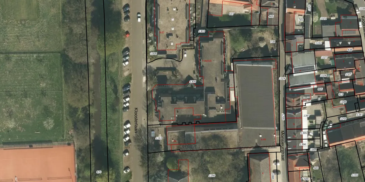 Het perceel waarop Kloosterlaan 7-k-7 staat heeft een oppervlakte van 2740 m². Dit is een zeer groot perceel. De perceeloppervlakte wordt geregistreerd door het Kadaster. Gedetailleerde informatie over de maten van dit perceel kunt u vinden in het rapport Kadastrale kaart met maatvoering van Kloosterlaan 7-k-7.