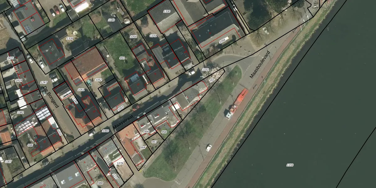 Maasstraat 1 is gelegen op kadastraal perceel WSM01B791. Deze kadastrale aanduiding is uniek en wordt gebruikt door het Kadaster om eigendomsrechten en andere zakelijke rechten vast te leggen. Het perceel maakt onderdeel uit van de kadastrale gemeente Wessem.