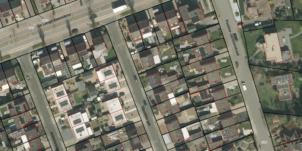 Gebruik de zoekbalk of klik op een perceel voor informatie over de adressen binnen dit perceel.
