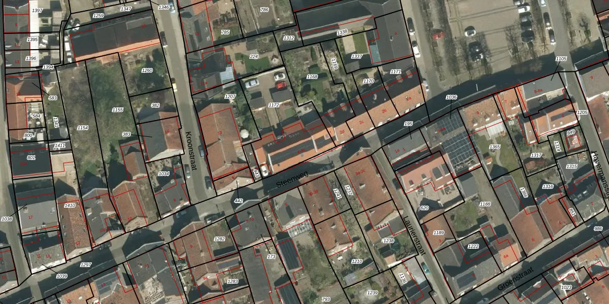 Het perceel waarop Steenweg 4-a staat heeft een oppervlakte van 630 m². Dit is een groot perceel. De perceeloppervlakte wordt geregistreerd door het Kadaster. Gedetailleerde informatie over de maten van dit perceel kunt u vinden in het rapport Kadastrale kaart met maatvoering van Steenweg 4-a.