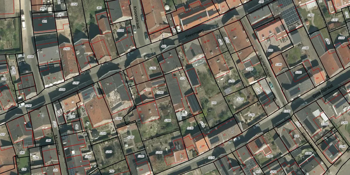 Het perceel waarop Steenweg 7-a staat heeft een oppervlakte van 370 m². Dit is een groot perceel. De perceeloppervlakte wordt geregistreerd door het Kadaster. Gedetailleerde informatie over de maten van dit perceel kunt u vinden in het rapport Kadastrale kaart met maatvoering van Steenweg 7-a.